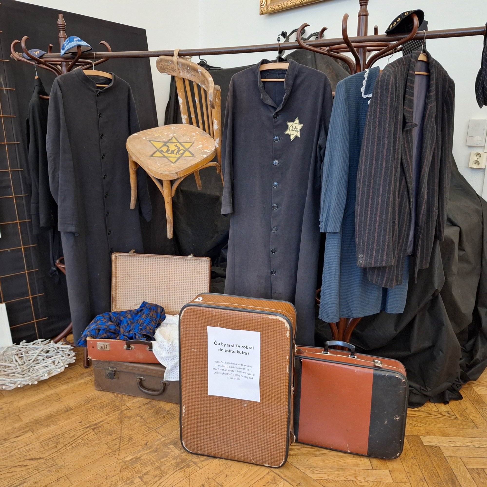 Celkovú atmosféru výstavy dotvárali autentické dobové predmety – kufre, školské lavice, oblečenie, lyže, bicykel, topánky... V mysliach sa nám vynárali otázky. Prečo boli niektoré veci zakázané? Prečo ich nesmeli vlastniť Židia? Koľko životne dôležitých vecí sa zmestí do kufra? Čo by som tam vložil ja, keby som musel odísť?