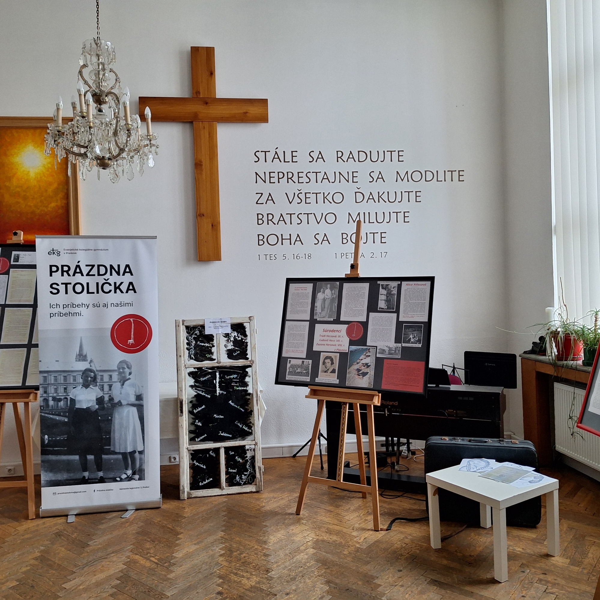 V druhej polovici novembra mali naši deviataci jedinečnú možnosť prezrieť si unikátnu vzdelávaciu výstavu s názvom Prázdna stolička, ktorá bola inštalovaná v Zborovej sieni evanjelickej fary v Martine.