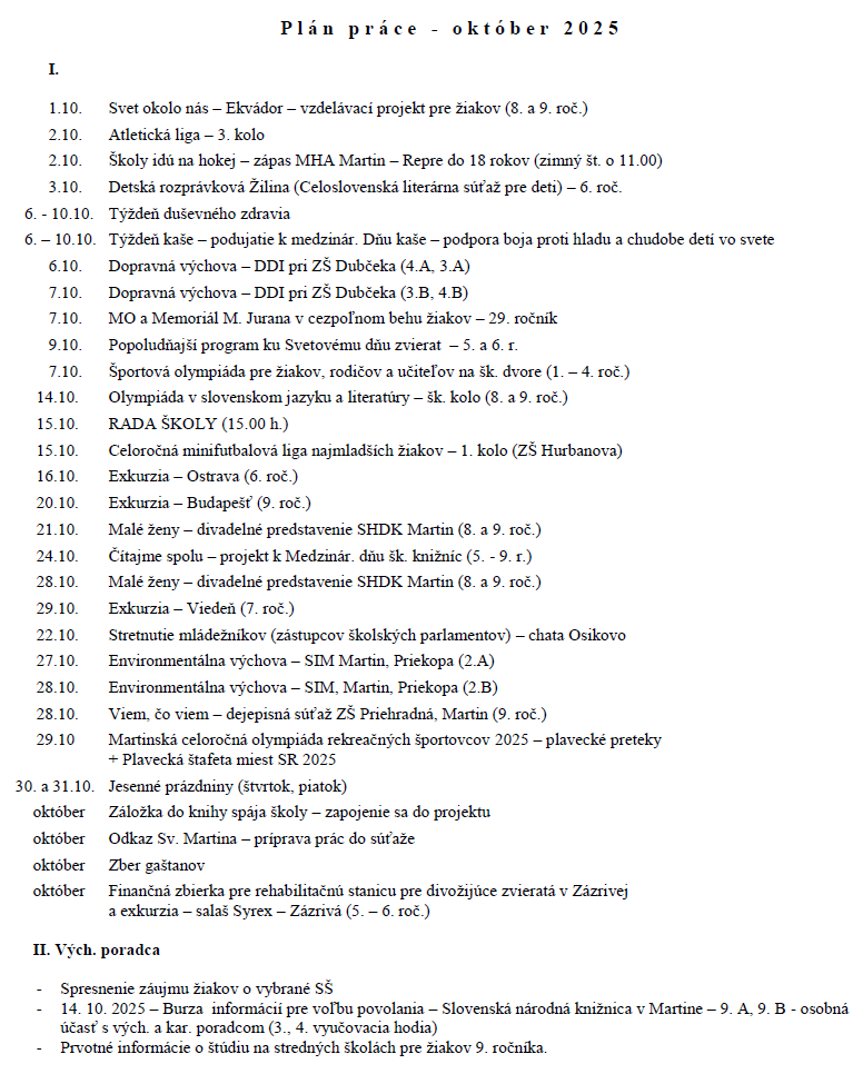 Plán október 2025