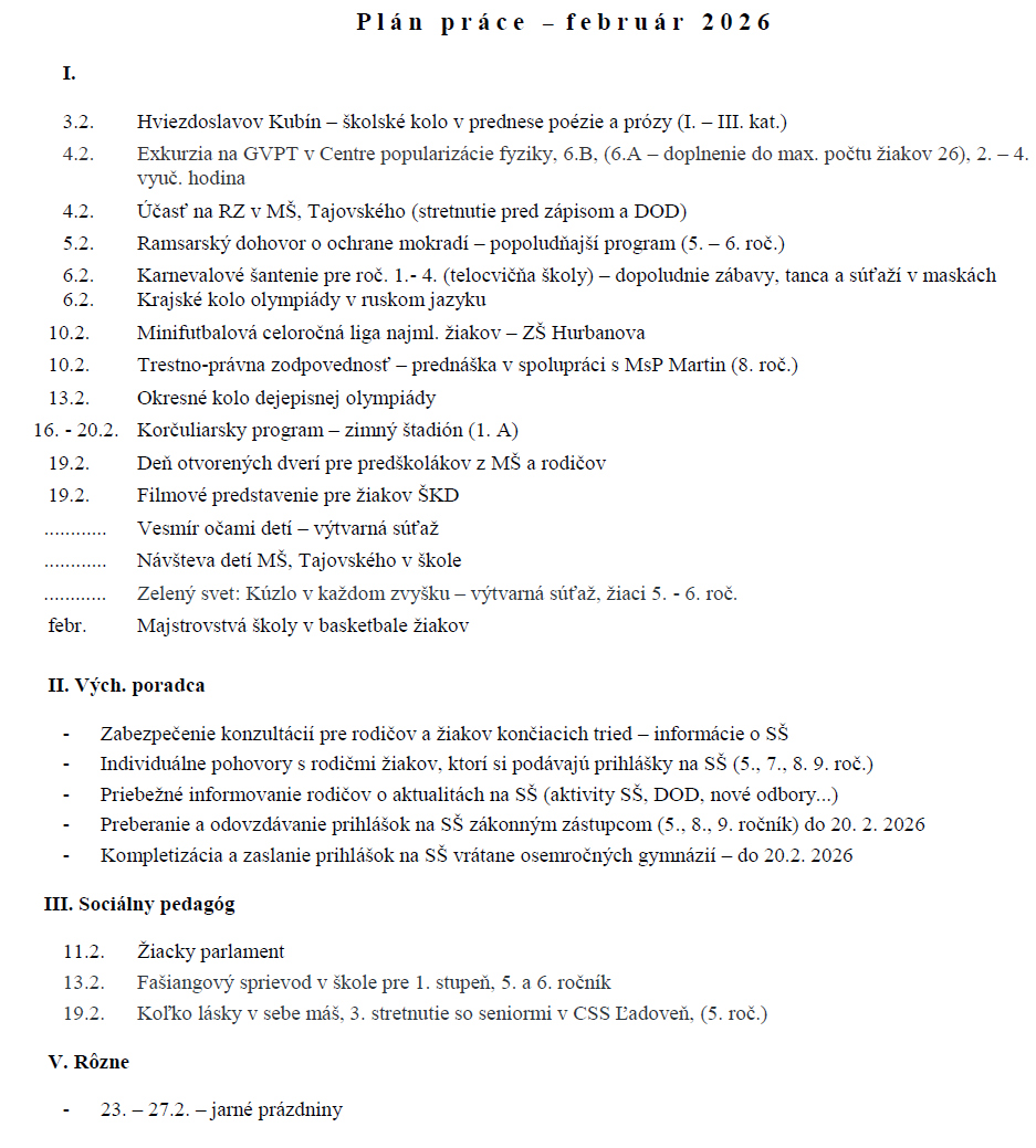 Plán február 2026